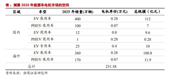 2018年我國新能源汽車銷量為125.6萬臺(tái),預(yù)計(jì)至2025年,新能源汽車銷量將達(dá)到700萬臺(tái),驅(qū)動(dòng)電機(jī)的市場規(guī)模也隨之快速增長。數(shù)據(jù)顯示,2020年初全球新能源汽車電機(jī)電控市場規(guī)模約200億元,其中電機(jī)和電控的價(jià)值量比約4:6,即電機(jī)市場規(guī)模約80億元。而據(jù)此簡單測算,2025年全球新能源汽車電機(jī)市場規(guī)模有望提升至250億元,GAGR超20%。