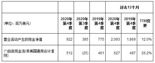 第四季度自由現金流(非美國通用會計原則)為5.12億美元,去年同期為4.61億美元。