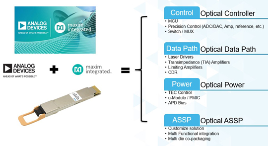 ADI完成對Maxim的并購后進一步豐富了光模塊應用產品組合