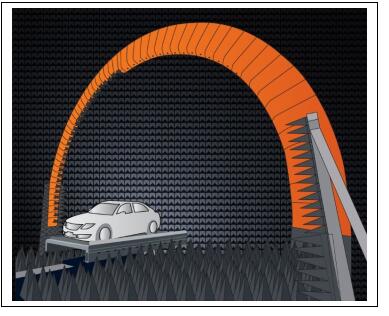 為了描述天線的特性,有必要測量其輻射圖,以確定它的輻射情況和方向。為了快速獲得可靠的三維輻射模式,天線性能測試正在轉向空中(OTA)測試解決方案,以便在系統層面獲得快速和可靠的測量。對于OTA測量,測試是通過無線電通信測試儀進行的,并在消聲室中使用近場測量方法,以阻止外部電磁場并模擬現實和復雜的射頻場景。為了解決測量高度連接的車輛的復雜性,MVG提供了OTA測量解決方案,專門用于全面驗證汽車無線性能。由于有了高精度的定位系統(控制器和轉臺),可以進行連續的即時測量。這允許快速、準確地測量指向性、增益和效率。