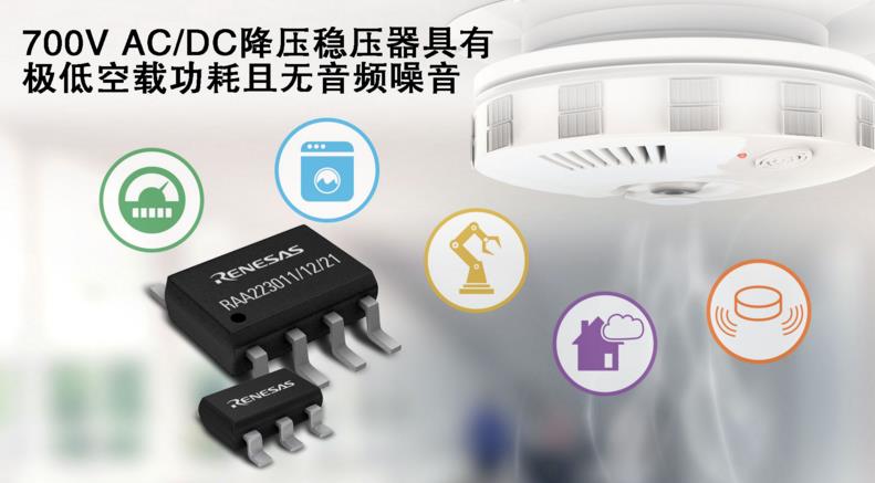 2021年6月24日,日本東京訊-全球半導體解決方案供應商瑞薩電子集團(TSE:6723)今日宣布,推出全新700V降壓穩壓器產品家族---RAA2230XX系列產品,為設計人員帶來相較于其他競爭方案更多的優勢。該新產品具有卓越的低功耗、低噪聲和電磁干擾(EMI)抑制能力,且極具系統成本優勢,成為家用電器、感測系統(如煙霧報警器和氣體傳感器)、白色家電、電表和工業控制等各類應用的理想選擇。