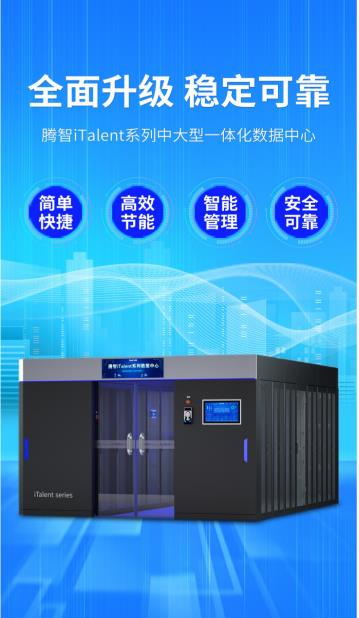 騰智iTalent系列中大型一體化數(shù)據(jù)中心將小型或中小型數(shù)據(jù)中心所需的所有設(shè)備全部集成于冷熱通道一體化全封閉的柜體內(nèi),并配置各種環(huán)境數(shù)據(jù)采樣傳感器,由eSite云圖監(jiān)控系統(tǒng)進(jìn)行統(tǒng)一的監(jiān)控及管理,將整個(gè)數(shù)據(jù)中心標(biāo)準(zhǔn)化于更小的空間內(nèi),高密部署,單柜最大功率可達(dá)10KW,為客戶設(shè)備提供安全可靠的運(yùn)行環(huán)境,且大大提升遠(yuǎn)程智能管理能力,產(chǎn)品標(biāo)準(zhǔn)化、模塊化,即插即用,使建設(shè)、運(yùn)維等都大大簡(jiǎn)化。適用于大型數(shù)據(jù)中心、園區(qū)數(shù)據(jù)中心等核心業(yè)務(wù)機(jī)房,適合于政府、醫(yī)療、教育、金融、電信等各行各業(yè)。
