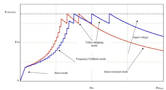 多模式工作VIPerGaN50有多種不同的工作模式,可根據其負載調整其開關頻率,在所有輸入電壓和負載條件下,最大限度提高電源能效。在高負載下,準諧振(QR)模式配合零壓開關可最大限度地減少導通損耗和電磁輻射(EMI)。在輕負載下,跳谷底模式可以控制開關損耗,并利用意法半導體專有的谷底鎖定技術防止產生人耳可以聽到的噪聲。頻率折返模式配合零壓開關可確保在輕負載條件下實現盡可能高的能效。自適應間歇工作模式可以在極低負載條件下最大程度降低功率損耗。此外,先進的電源管理功能可將待機功率降至30mW以下。