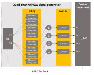 圖2.使用四通道信號發(fā)生器測試5G NR基站性能的測試設(shè)置。