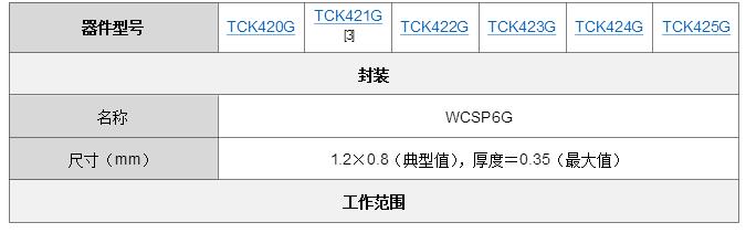 TCK42xG采用WCSP6G[1]封裝,是業內最小的[2]封裝類型之一,助力可穿戴設備、智能手機等小型設備實現高密度貼裝,從而縮小它們的尺寸。