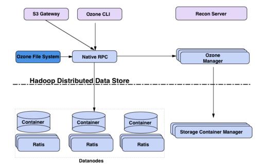 下層實現(xiàn)了一個叫Hadoop Distributed Data Store(HDDS)的高可用、塊存儲層。