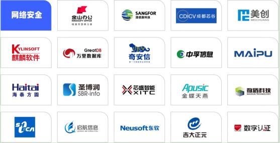 金山辦公、深信服、成都芯谷、美創、麒麟軟件、萬里數據、奇安信、中孚信息、邁普、海泰方圓、圣博潤、芯盛智能、金蝶天燕、數盾科技、上海CA、成都啟航、東軟、吉大正元、數字認證等聯合構建網絡安全新環境,營造清朗的網絡空間。