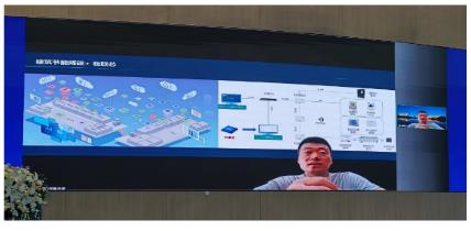 圖2.中國(guó)電科院能源互聯(lián)網(wǎng)技術(shù)研究院姚國(guó)風(fēng)講解基于NB2的建筑降碳方案以及相應(yīng)智能邊緣網(wǎng)關(guān)Demo展示