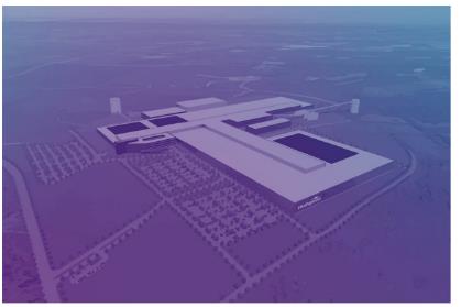 該工廠的一期建設預計將于2024年完成,成本預計13億美元。在2024年至這個十年結束之前,公司還將根據需求擴大額外產能,預計最終占地面積445英畝,建成超過100萬平方英尺的工廠。