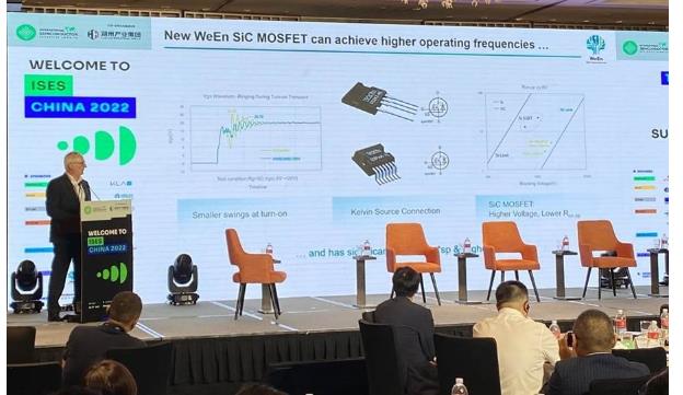 2022年9月6日,瑞能半導體CEO Markus Mosen先生受邀出席了在上海盛大舉辦的第九屆中國國際半導體高管峰會(以下簡稱:CISES)。在CISES上,Markus Mosen先生發表了《新一代碳化硅MOSFET,正在打造更加綠色的未來》的主題演講,聚焦在“雙碳”背景的驅動下,碳化硅產業充滿的機遇和前景,重點結合了最新推出的1700V SiC MOSFET產品的效率優勢,詳解了瑞能半導體在應用領域的建樹。