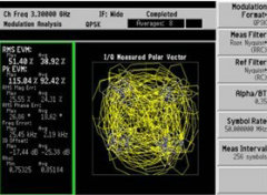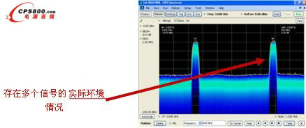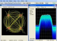 前面提到,在實際環境中,在被測信號相鄰區域通常存在多個信號。在下面所示的QPSK寬帶實例中,在頻譜窗口內存在第二個信號,導致左面的傳統頻譜儀同時轉換兩個信號,進而阻礙其解調預計的信號。RSA6120A預選濾波器可以抑制這個信號及可能干擾分析關心信號的所有其它頻譜窗口。其結果,得到右面所示的準確的誤差矢量幅度(EVM)指標。