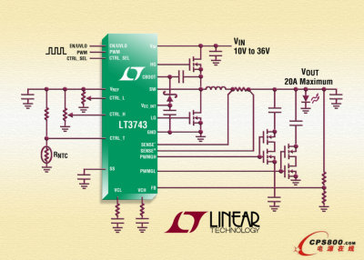 凌力爾特公司 (Linear Technology Corporation) 推出同步降壓型 DC/DC 轉換器 LT3743,該器件用來提供恒定電流,以驅動大電流 LED。該器件的 5.5V 至 36V 輸入電壓范圍使其非常適用于多種應用,包括工業、DLP 投影和建筑照明。