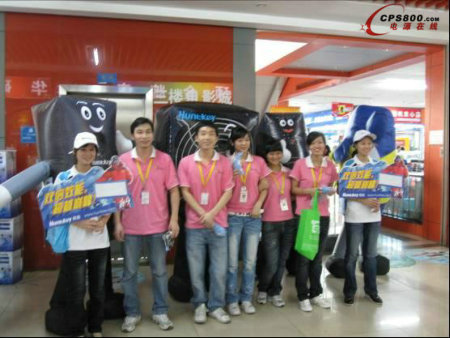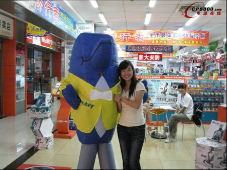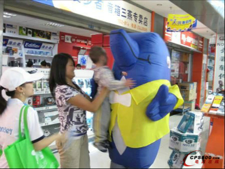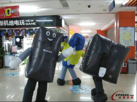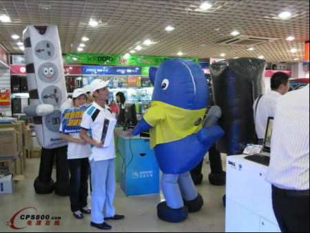 航嘉此次賣場走秀有諸多創(chuàng)新。首先,與以往“嘉嘉”唱獨角戲的風格迥然不同,航嘉“四大金剛”聯(lián)手“嘉嘉”同臺共舞,吸引了電腦賣場眾多人的矚目和贊嘆。航嘉“四大金剛”分別是以X7為原型的電源行走氣模,以H403為原型的機箱行走氣模,以PSB404為原型的電源轉換器行走氣模和以輕薄著稱的“易配”為原型的適配器行走氣模。其次,航嘉巡展采取人員走秀小分隊和行走氣模小分隊的模式,既方便走秀人員貼近客戶、進行愉悅互動,又方便行走氣模展示產品和制造走秀氛圍。