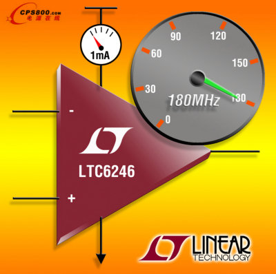 凌力爾特公司 (Linear Technology Corporation) 推出運算放大器系列 LTC6246、LTC6247 和 LTC6248,該系列器件運用一種節省功率的 SiGe 工藝,實現了 180MHz 增益帶寬積和 90V/us 轉換率,同時每放大器僅消耗 1mA 最大電源電流。這些單、雙和 4 路運算放大器還具有軌至軌輸入和輸出、以及 4.2nV/Hz 寬帶噪聲。