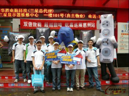 航嘉巡展隊伍風塵仆仆趕到惠州,見面之后才發現,原來惠靈通(惠州)負責人胡道志非常年輕,一表人才。這位精明的江西小伙子安頓好航嘉巡展隊伍后,即可與大家溝通電腦賣場走秀和培訓交流會的各種細節和準備工作。