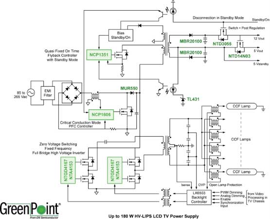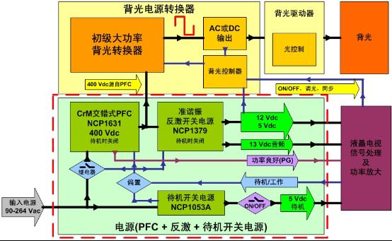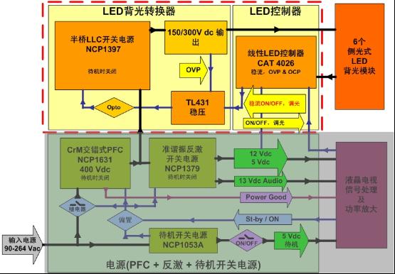 圖2:安森美半導體32英寸高壓LIPS液晶電視電源GreenPoint®參考設計功能框圖