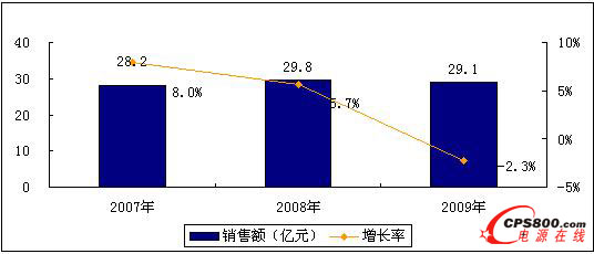 表1 2007-2009年中國UPS市場銷售