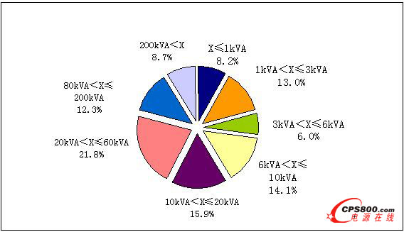 圖2 2009年中國UPS功率段銷售結構