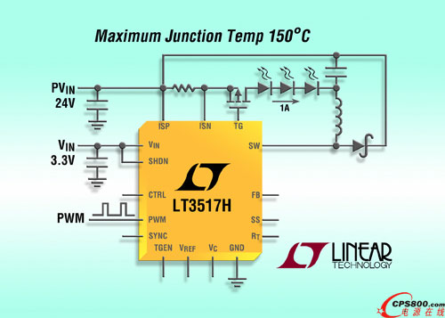 日前,凌力爾特公司 (Linear Technology Corporation) 推出 LT3517 的 H 級版本。LT3517 是一種高壓側(cè)電流檢測 DC/DC 轉(zhuǎn)換器,為以恒定電流驅(qū)動大電流 LED 而設(shè)計。其具 40V 瞬態(tài)保護(hù)的 3V 至 30V 輸入電壓范圍使該器件非常適用于多種應(yīng)用,包括汽車、工業(yè)和建筑照明。該 H 級版本能以高達(dá) 150˚C 的結(jié)溫工作,相比之下,E 和 I 級版本的最高結(jié)溫為 125˚C。E、I 和 H 級版本的所有電氣規(guī)格都相同。H 級器件經(jīng)過測試,直到 150˚C 的最高結(jié)溫都有保證,從而使這些器件非常適用于高環(huán)境溫度的汽車和工業(yè)應(yīng)用。