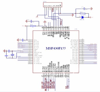 MSP430F155單片機(jī)具有非常豐富的片內(nèi)資源,因此,最小系統(tǒng)無需配置過多的外圍接口芯片就可滿足本系統(tǒng)要求,其最小系統(tǒng)組成如圖2所示。