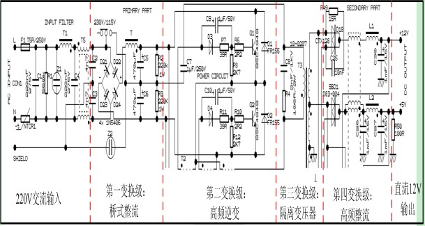 當前IT負載內部的輸入電源模塊基本采用兩種標準制式,即ATX制式和SSI制式。這兩種制式電源的主電路如圖1所示。