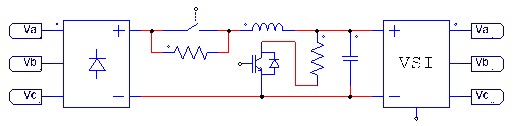 在輸入端是一個六脈波整流以及附加的直流或者交流側濾波器,而在直流母線上連接有制動電阻。當電機發生能量回饋時,變頻器的直流母線會被充高。在直流母線達到預設的電壓點時,通過開通制動電阻控制來消耗掉回饋的能量。這種做法是目前工業界最普遍的方式,其優點是簡單可靠,而且對于UPS來說變頻器就是一個標準的非線性整流負載,與IT類負載非常接近。當然其缺點則是電機回饋的能量被轉換成熱量消耗掉,沒有重新利用。