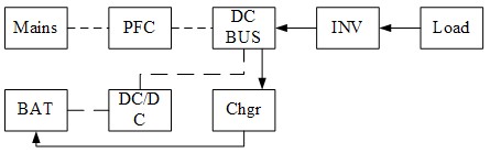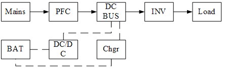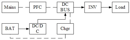 另一方面,UPS在電路架構上常用的結構是整流+電池升壓+逆變器的結構,很大一部分UPS的整流和電池升壓部分都是使用Boost或者變形的電路,能量僅能從市電和電池流動到直流母線上,而不能反向流動。這樣即使軟件上允許能量回饋,但是當發生能量回饋時,由于能量都儲存在直流母線上,造成直流母線升高,最終仍然會導致UPS跳脫保護。