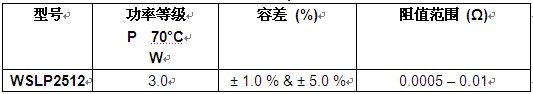 新款WSLP2512 Power Metal Strip電阻:規格匯總表