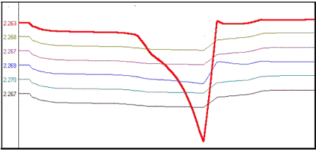 雖然測(cè)量浮充電壓并及時(shí)作出調(diào)整是蓄電池日常維護(hù)的一項(xiàng)重要工作,但是測(cè)量浮充電壓并不能找出落后單體電池。如圖一所示,用萬(wàn)用表測(cè)出該組電池各單體的浮充電壓相當(dāng)平均,但放電一會(huì)兒,其中一個(gè)電池的端電壓迅速降至截止電壓以下,顯然該電池為落后單體。