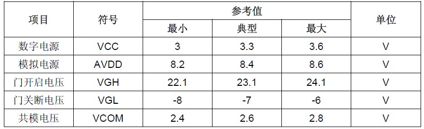 下面以Starry Electronic推出的20810700150212為例具體分析各路驅動電源的供電需求。該TFT模組為7"屏模組,支持分辨率800x400 (RGB),像素間距0.1896x0.1790毫米。根據數據手冊,該TFT模組的工作電壓如下: