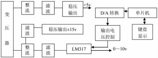 圖1 用單片機制作的直流穩壓可調電源框圖
