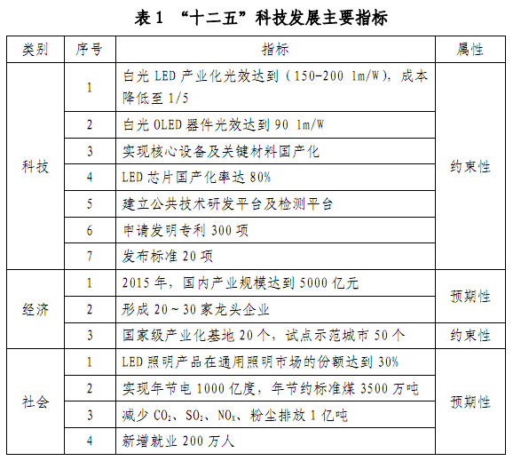 《半導體照明科技發展“十二五”專項規劃》制定了半導體照明產業發展的總目標,即到 2015 年,實現從基礎研究、前沿技術、應用技術到示范應用全創新鏈的重點技術突破,關鍵生產設備、重要原材料實現國產化;重點開發新型健康環保的半導體照明標準化、規格化產品,實現大規模的示范應用;建立具有國際先進水平的公共研發、檢測和服務平臺;完善科技創新和產業發展的政策與服務環境,建成一批試點示范城市和特色產業化基地,培育擁有知名品牌的龍頭企業,形成具有國際競爭力的半導體照明產業。