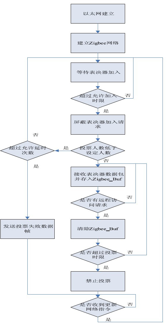 投票表決器在選舉,會(huì)議,教學(xué),娛樂(lè)節(jié)目中得到大量的使用。現(xiàn)行的無(wú)線表決系統(tǒng)采用單一的無(wú)線網(wǎng)絡(luò),使無(wú)線終端設(shè)備與上位機(jī)進(jìn)行通信。由于無(wú)線網(wǎng)絡(luò)存在傳輸距離有限,對(duì)障礙物穿透性較差等問(wèn)題,無(wú)法實(shí)現(xiàn)遠(yuǎn)程監(jiān)控和多會(huì)議室同時(shí)投票等問(wèn)題。本文利用Zigbee 技術(shù)具有低功耗,使用頻段免費(fèi)和以太網(wǎng)具有傳輸遠(yuǎn),傳輸速率快等特點(diǎn),將二者相結(jié)合,設(shè)計(jì)了一款無(wú)線投票表決器基站。實(shí)現(xiàn)了無(wú)線投票表決器遠(yuǎn)程監(jiān)控和多會(huì)議室同時(shí)投票功能。
