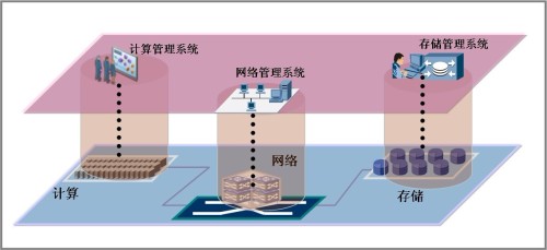 傳統(tǒng)數(shù)據(jù)中心,基礎(chǔ)架構(gòu)層面設(shè)備之間通過(guò)標(biāo)準(zhǔn)化連接和協(xié)議互通,保證了計(jì)算、存儲(chǔ)、網(wǎng)絡(luò)設(shè)備的管理系統(tǒng)之間相互分離、獨(dú)立(如圖1所示),從而使得不同的運(yùn)維團(tuán)隊(duì)可以按照自身業(yè)務(wù)發(fā)展與架構(gòu)演進(jìn)的趨勢(shì)不斷完善和深化各自的管理規(guī)程,滿足數(shù)據(jù)中心業(yè)務(wù)不斷發(fā)展的要求。