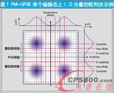 基于數字相干接收PM-QPSK調制100G接收機,不論其采用軟判決還是硬判決,其信號處理結構和流程基本相同,不同之處在于軟判決給后續的前向糾錯編碼(FEC)解碼單元提供了額外的可信度信息,而硬判決僅提供單比特判決信息,拋棄了可信度信息,放棄了模數轉換器和數字相干接收所提供的糾錯優勢。軟判決所提供的可信度信息可以進一步提高FEC編碼增益。