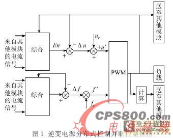 逆變電源并聯控制策略中,集中控制和主從控制都可能因為部分電路故障而使整個系統故障停機。分布式并聯控制[1]策略可解決該問題,在各逆變電源中綜合每個電源模塊的電流及頻率信號,得出各自頻率及電壓的補償信號,該方式能實現真正的N+1運行模式。