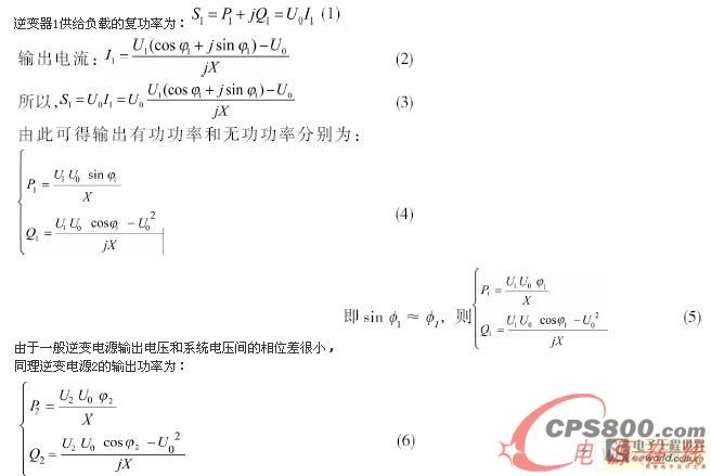 有功和無功并聯控制,即功率偏差并聯控制。通過每個逆變電源單元檢測出本單元輸出的有功和無功的偏差值,以調節逆變電源單元輸出電壓的相位和幅值,保證每個逆變電源單元輸出的有功無功相等,達到均流的目的。