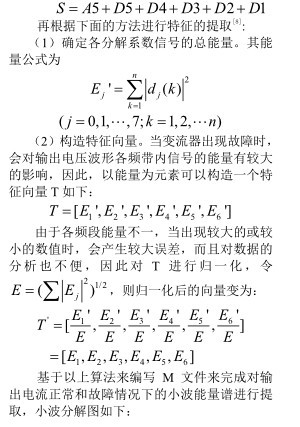 [2],能快速、準確、實時的在線對 PWM整流器開關管故障診斷,從而便于容錯控制,保證列車平穩、安全的運行。故障特征的準確提取是故障診斷能否成功的關鍵。由于電力電子電路是多變量、非線性、強耦合的復雜系統,很難建立準確、有效的數學模型,傳統的故障診斷方法根本無法滿足當今的技術指標要求,而單一的智能診斷方法的故障診斷也不是十分有效,因此本文根據理論的分析與 MATLAB 的仿真,提出用小波分解來提取小波能量譜來作為故障特征量,并將標幺化后的特征量輸入BP神經網絡來完成故障的識別與診斷。