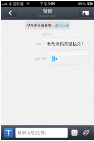 邀約:三五好友,用翼聊分別接入多方電話。彼此熟悉的聲音,就是讓你放下一切來相見的最大動力。無需邀約,你們從彼此聲音中,聽懂彼此迫切的思念。