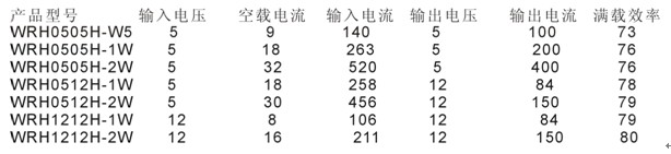 WRHxxxxH-xW系列:5VDC/9VDC/12VDC/15VDC 寬電壓輸入/穩壓單輸出,自恢復過載短路保護功能,空載時輸出電壓不變。