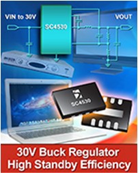 升特公司(Semtech)于近期發(fā)表了高效率微功率步進(jìn)降壓式開關(guān)穩(wěn)壓器平臺中的第一款器件——SC4530。SC4530為30V微功率buck穩(wěn)壓器,以650μA 輸出電流提供了大于80%的輕載效率和50mm2超小型占位面積的解決方案。這些特性組合滿足了筆記型計算機(jī)和機(jī)上盒應(yīng)用的關(guān)鍵要求,即電池壽命長、體積小,以及設(shè)計簡潔。