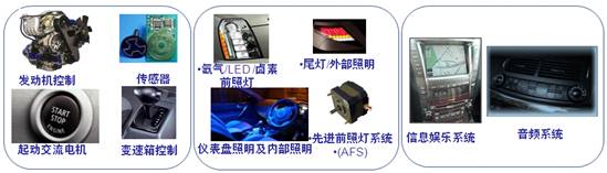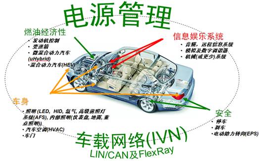 如今,汽車大趨勢(shì)正在推動(dòng)著半導(dǎo)體成分的升高。主要推動(dòng)因素包括:動(dòng)力系統(tǒng)重點(diǎn)應(yīng)用,如提升汽車能效及將清潔能源技術(shù)用于汽車、智能電動(dòng)汽車電源管理、高能效變速箱的使用;車身重點(diǎn)應(yīng)用,如網(wǎng)絡(luò)、采用先進(jìn)照明及LED照明;安全/底盤重點(diǎn)應(yīng)用,如避免碰撞、動(dòng)力制動(dòng);信息娛樂系統(tǒng)重點(diǎn)應(yīng)用,如駕駛?cè)诵畔ⅰ⒉迦朐O(shè)備/充電;新興市場(chǎng),包括重利用在成熟市場(chǎng)獲得驗(yàn)證的架構(gòu)來(lái)符合汽車定價(jià)要求,雖然廉價(jià)汽車的半導(dǎo)體成分較低,但用量極大。