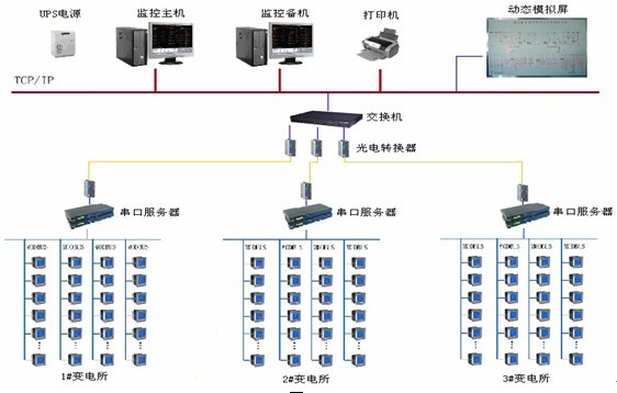 現場設備為采集現場各回路電力系統運行參數,包括電流、電壓、功率等遙測信息以及斷路器分合閘狀態以及故障等開關量狀態;網絡管理層主要包括通訊管理機、光電轉換設備、交換機等,負責數據的上傳及指令的下達;監控管理層為整個系統的核心,所有數據的存儲、電力系統的運行狀況的顯示、控制指令的下達均通過該部分完成。