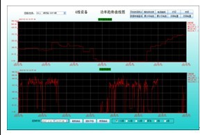 設備功率曲線 功能窗口可以選擇生產線,選完之后會在屏幕上方的中間顯示產線名稱(如4線設備)。下面有兩個曲線顯示窗口,此時分別顯示一小時的曲線和一天的曲線。功率曲線橫軸時間長度和縱軸的功率量程都可以根據需求任意改動。并且具有手動輸入時間查詢功能,可以查詢數據庫中任何有記錄的歷史值。