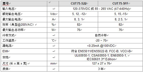 主要數(shù)據(jù):CUT75系列