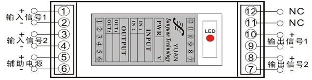 例3: 信號輸入: 0-5KHZ, 信號輸出: 0-5V; 輔助電源:5V。 一進一出導軌安裝。