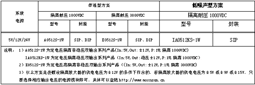 以下提供一些應用在放大器、A/D、D/A等模擬電路中的DC/DC電源模塊的型號參考: