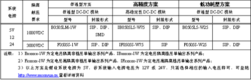 以下提供一些應用在RS485/232等接口電路中的DC/DC電源模塊的型號參考: