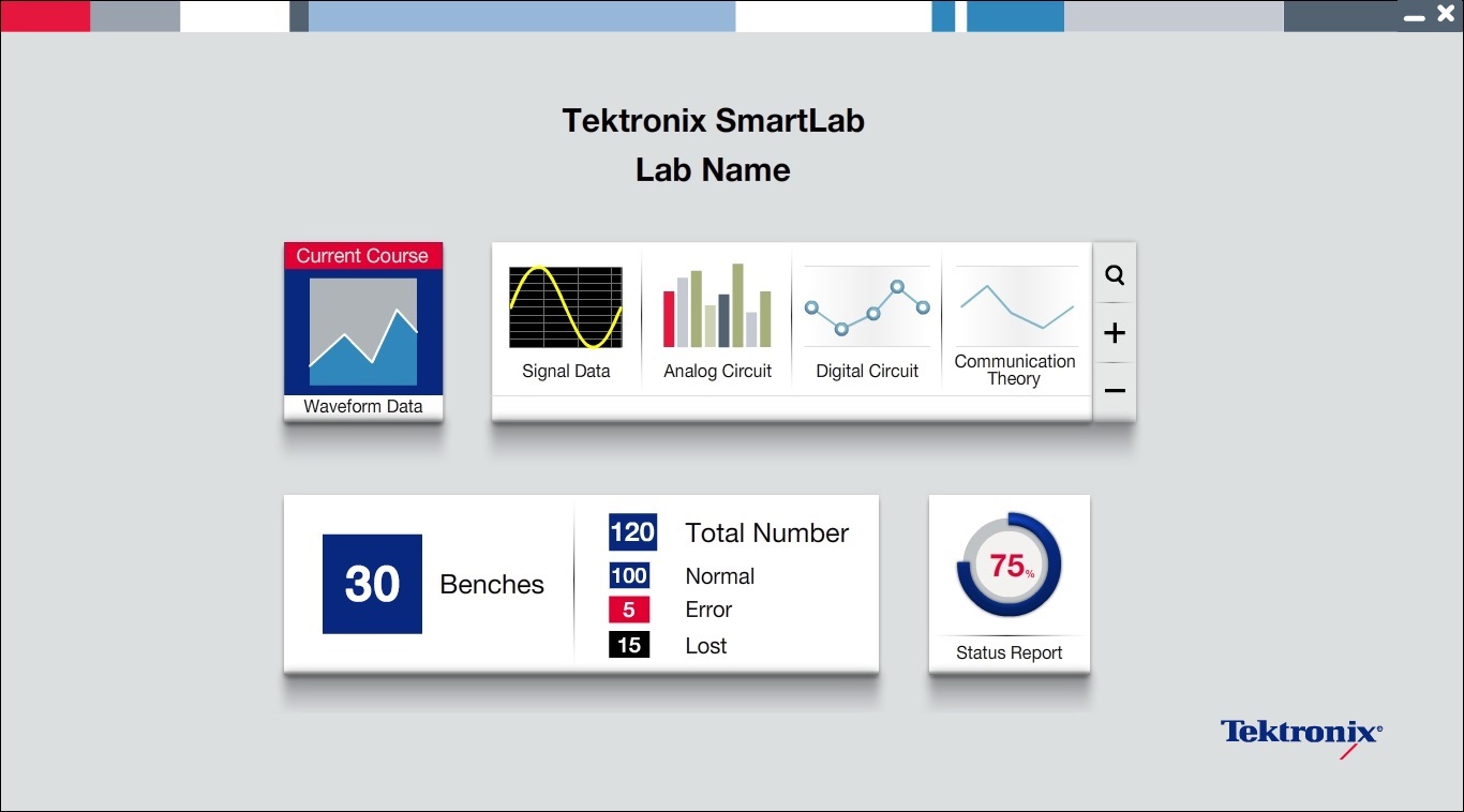 在實(shí)驗(yàn)室服務(wù)器上運(yùn)行的TekSmartLabTM可快速進(jìn)行設(shè)置快速,無需任何LAN電纜或特定儀器配置。教師可從中心儀表板加載與其課程要求有關(guān)的儀器配置,然后只需點(diǎn)擊鼠標(biāo)即可將這些配置分發(fā)到多達(dá)120個(gè)儀器。教師還能輕松檢查儀器狀態(tài)和測(cè)量?jī)?nèi)容,遠(yuǎn)程幫助特定試驗(yàn)臺(tái),以及將學(xué)生的測(cè)量結(jié)果保存到報(bào)告。