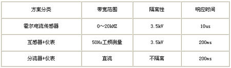開環霍爾電流傳感器具有測量雙向直流電流,過載能力強,反應速度快,高線性度 ,穿孔開口式、維護方便等眾多優點。綜合了電流互感器和分流計的所有優點,克服了互感器和分流器的不足,如下表所示: